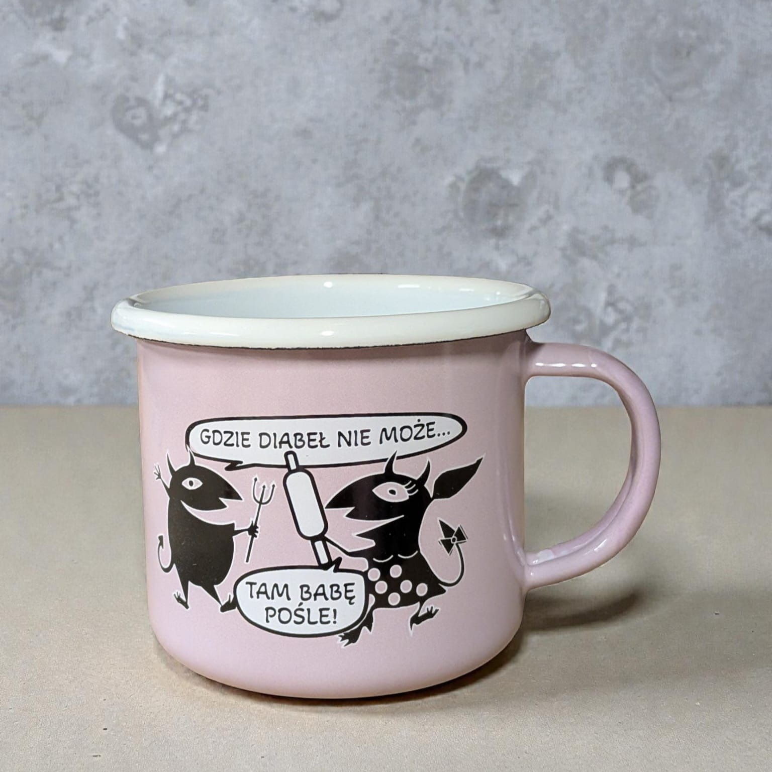 Kubek "Gdzie diabeł nie może..." - 0,35 l - różowy