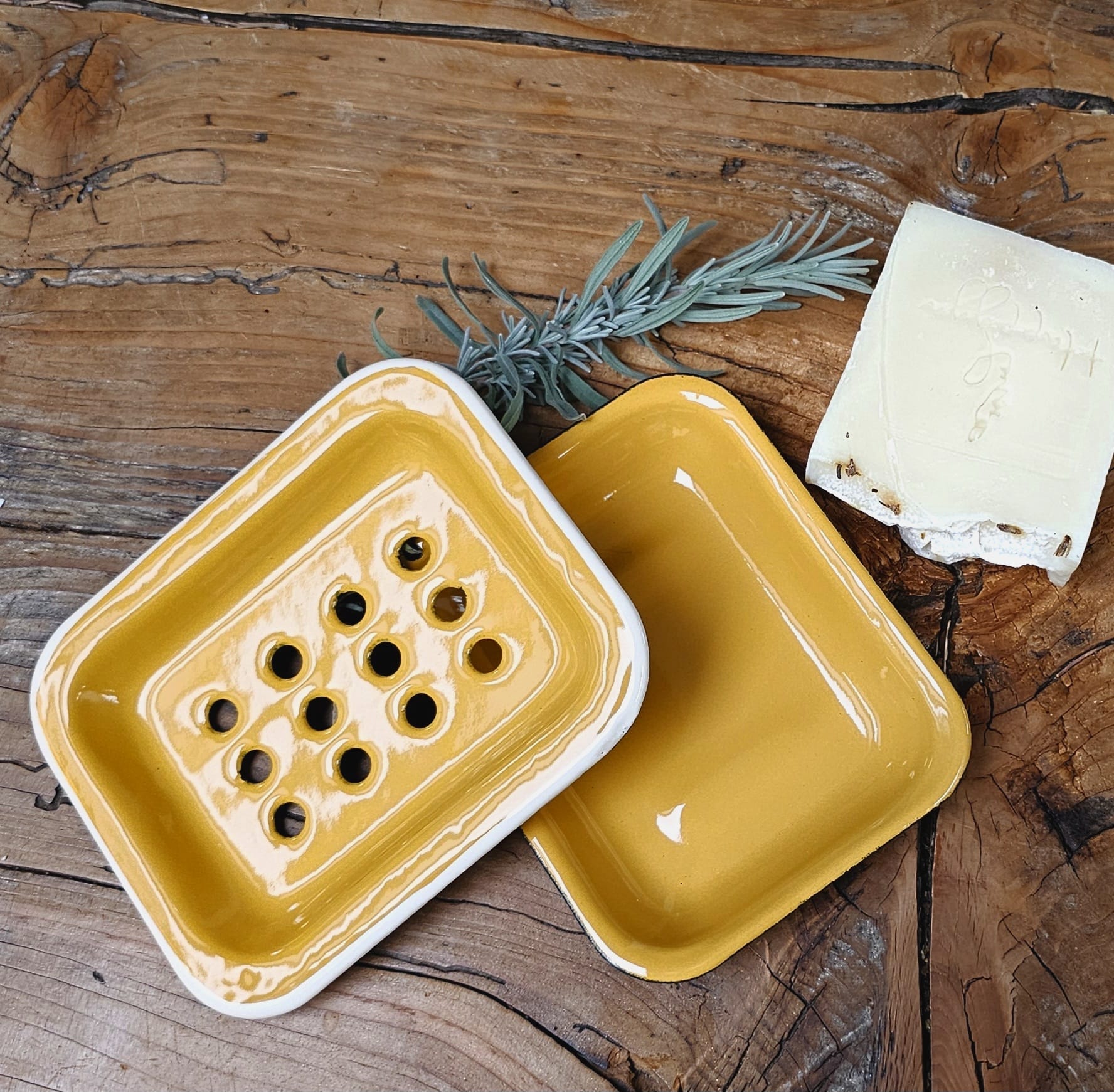 Urocza mydelniczka, składająca się z dwóch części - spodeczka i tacki z dziurkami, które odprowadzają nadmiar wody z mydła i pozwalają mu obeschnąć.
