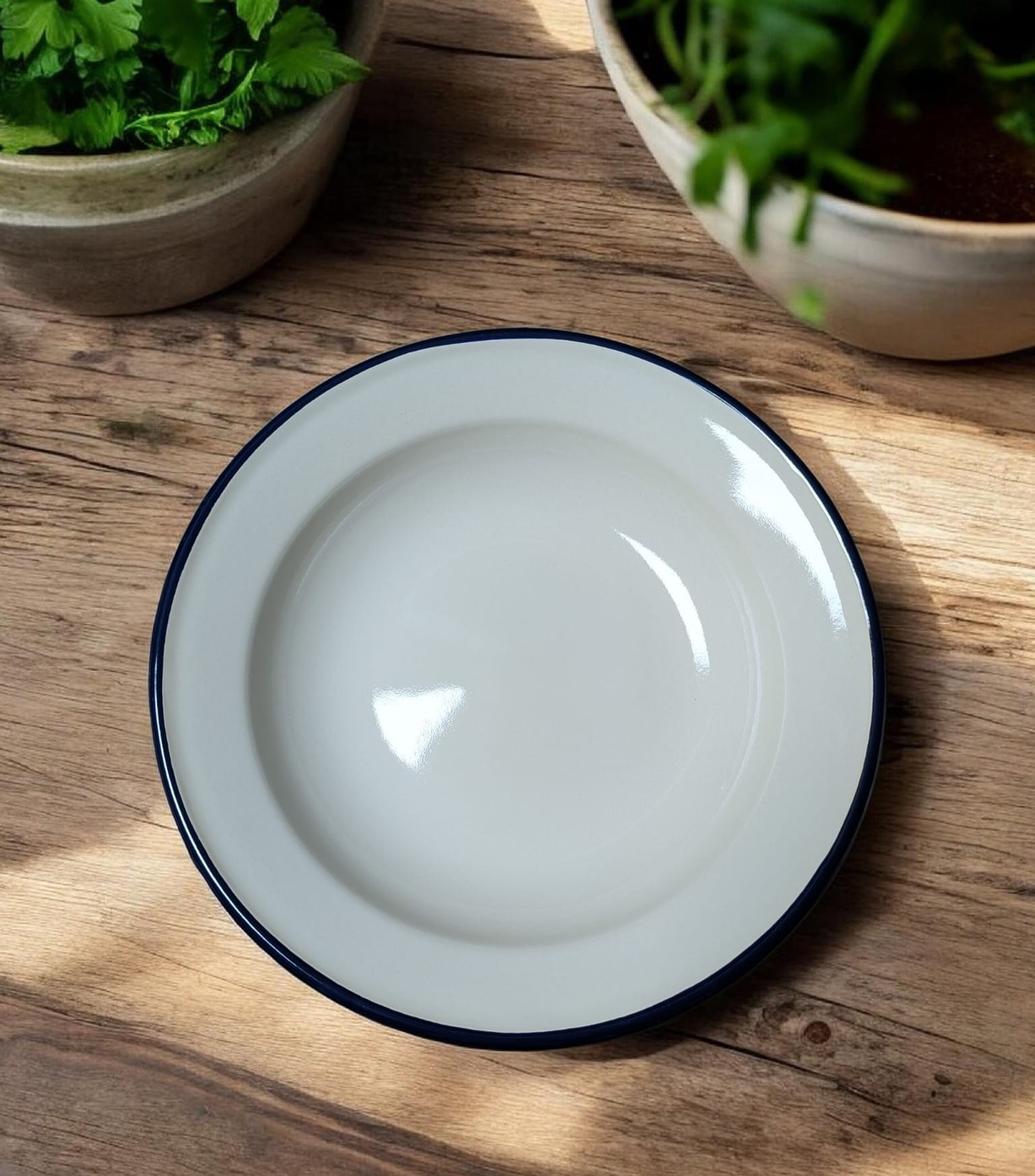 Talerz głęboki - średnica 24 cm - kremowy z granatowym brzegiem